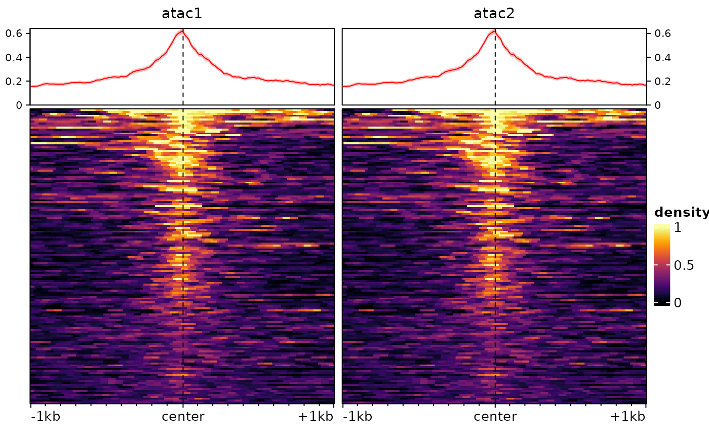 method="border"works on the assumption that the left/right borders of the matrices represent background signal which should be equal across samples. As such, it can be seen as an approximation of the aforementioned background normalization. However, it will work only if 1) the left/right borders of the matrices are sufficiently far from the signal (e.g. peaks) to be chiefly noise, and (as with the main background normalization method itself) 2) the signal-to-noise ratio is comparable across tracks/samples. -