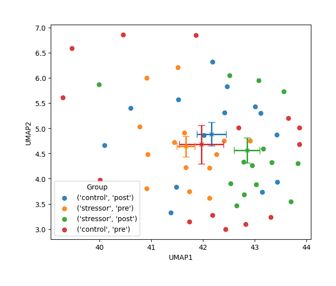 Your labels: ['control, post', 'control, pre', 'stressor, post', 'stressor, pre']